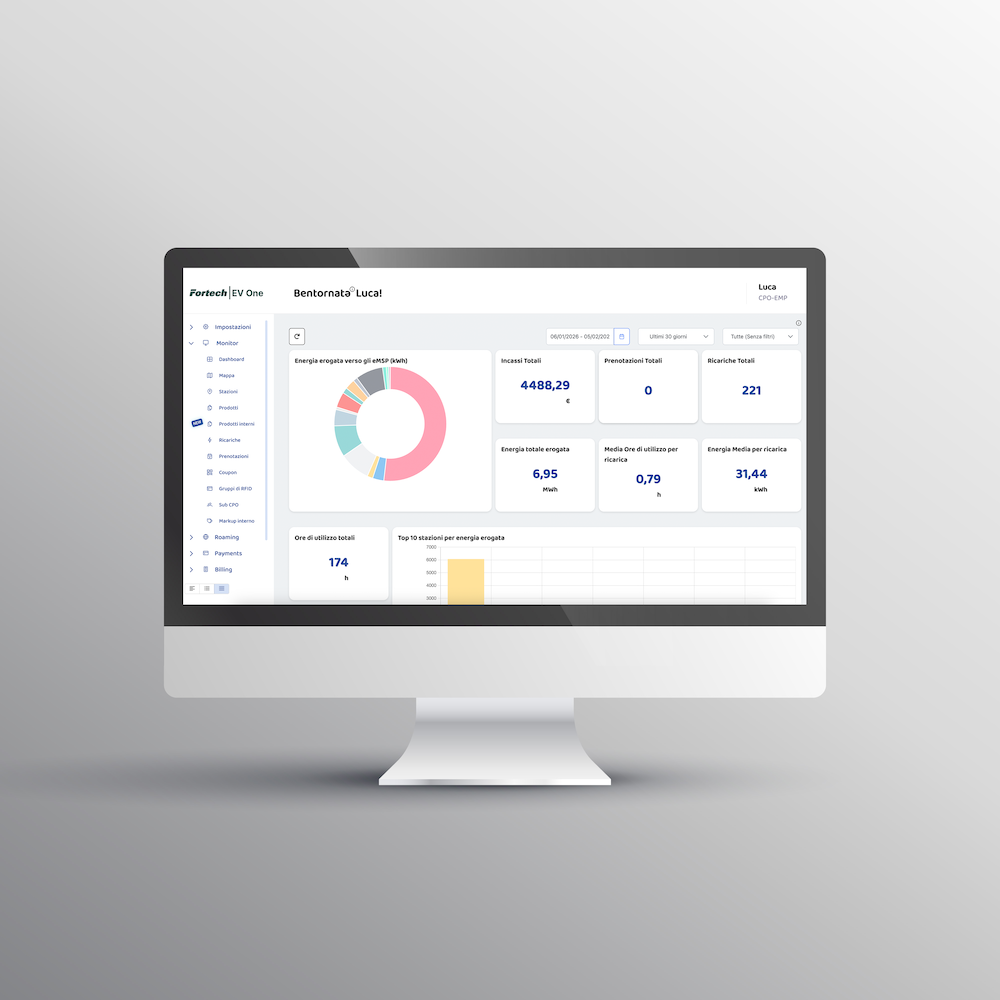 Fortech EV One è la piattaforma OaaS o white label destinata al mondo EV charging; un software che garantisce semplicità di utilizzo e completa integrazione con l’ecosistema.