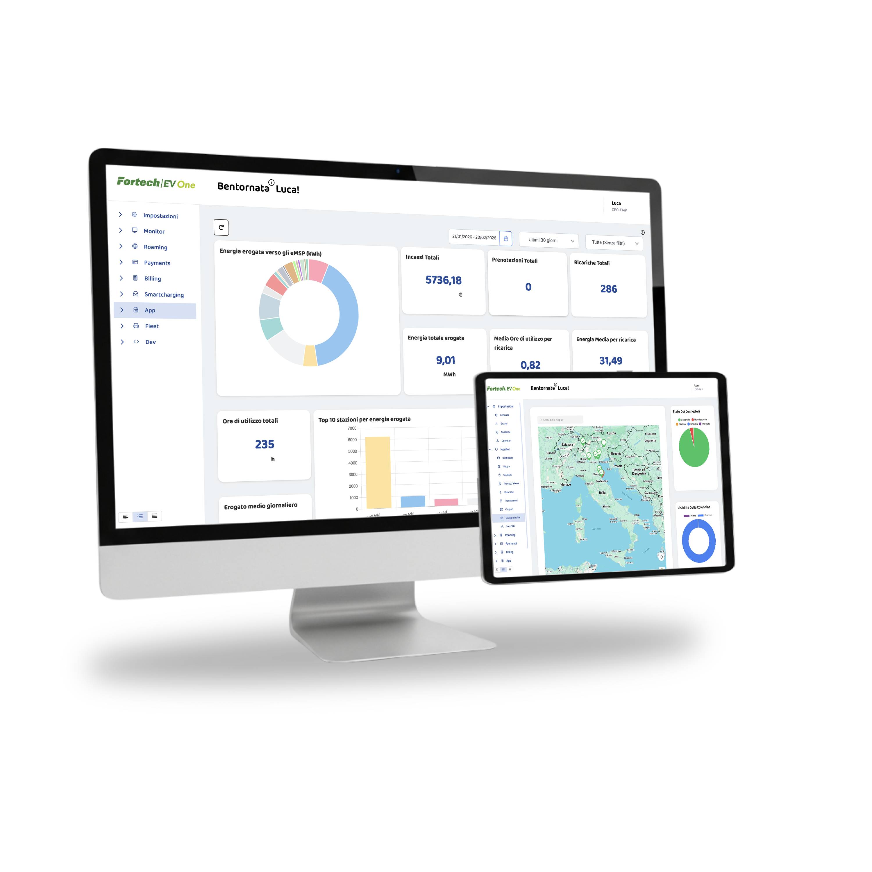 L’esperienza digitale dell’utente finale è completata dalla possibilità di usare anche una app, con un ambiente dedicato per integrazioni, API e sviluppi custom. Una scelta che rende Fortech EV One una piattaforma aperta, capace di evolvere insieme ai modelli di business dei suoi clienti.